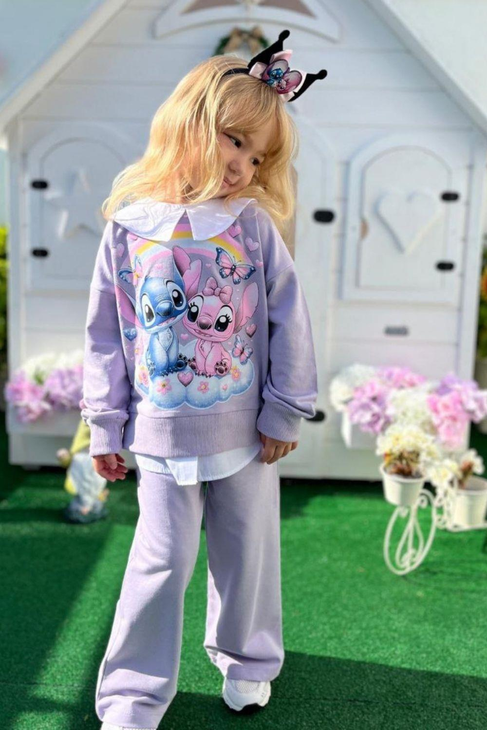 Kız Çocuk 2 İplik Taç Dahil Gömlek Yaka Stitch Lila Takım (MMK-00100)