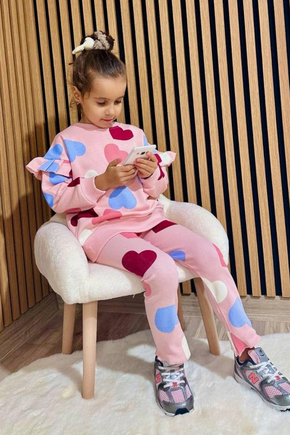 Kız Çocuk 3 iplik Kalpli Taytlı Takım