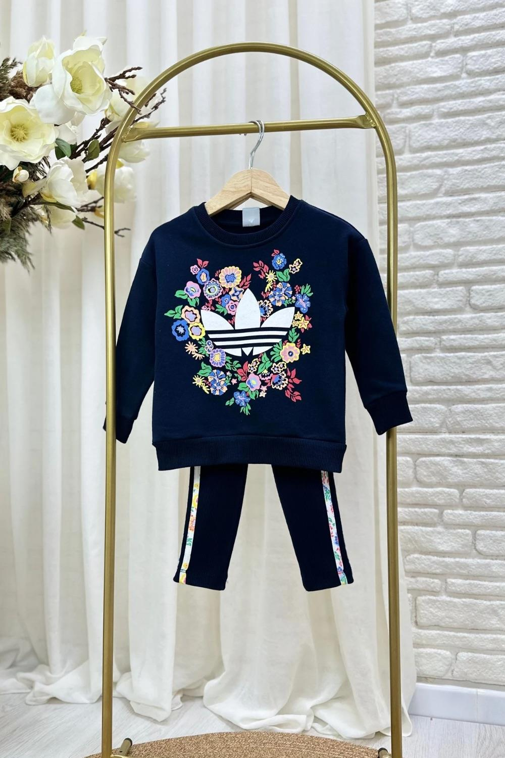 Kız Çocuk 3 İplik Lacivert Adids Taytlı Takım (MMK-00127)