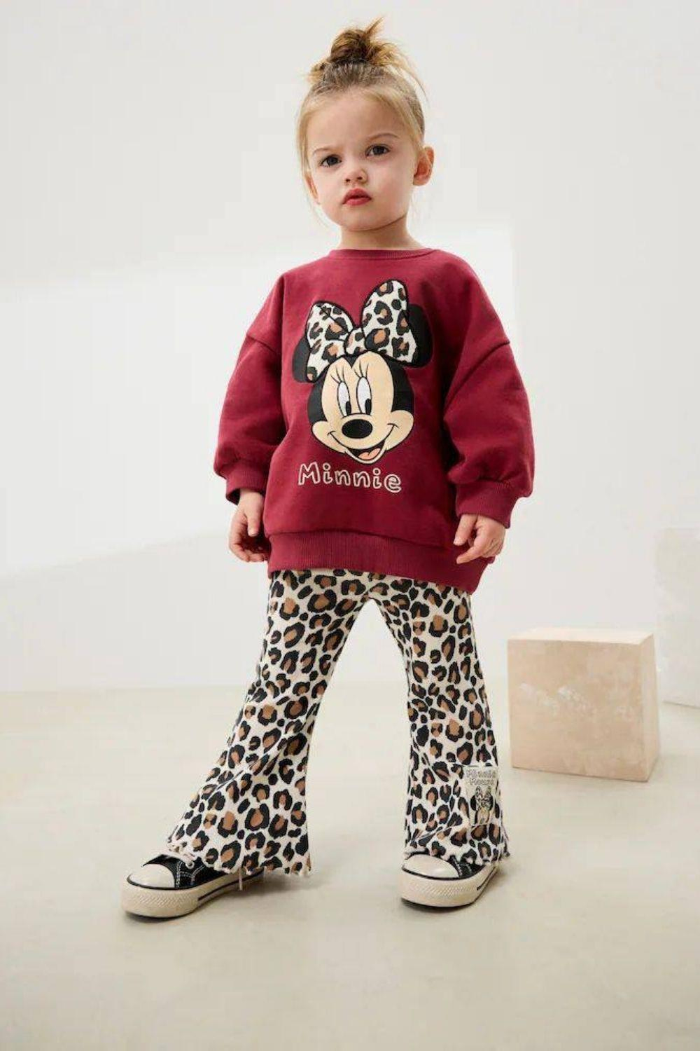 Kız Çocuk 3 İplik Minnie Leopar Taytlı Takım
