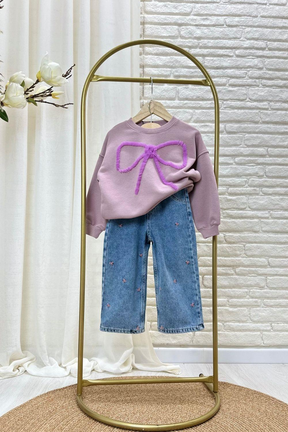 Kız Çocuk Fiyonk Detaylı Jean Takım