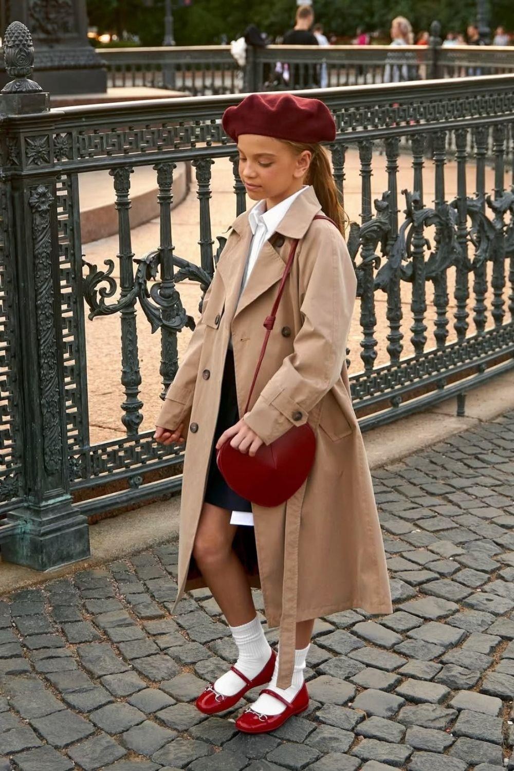 Kız Çocuk Kemerli Kahve Trençkot