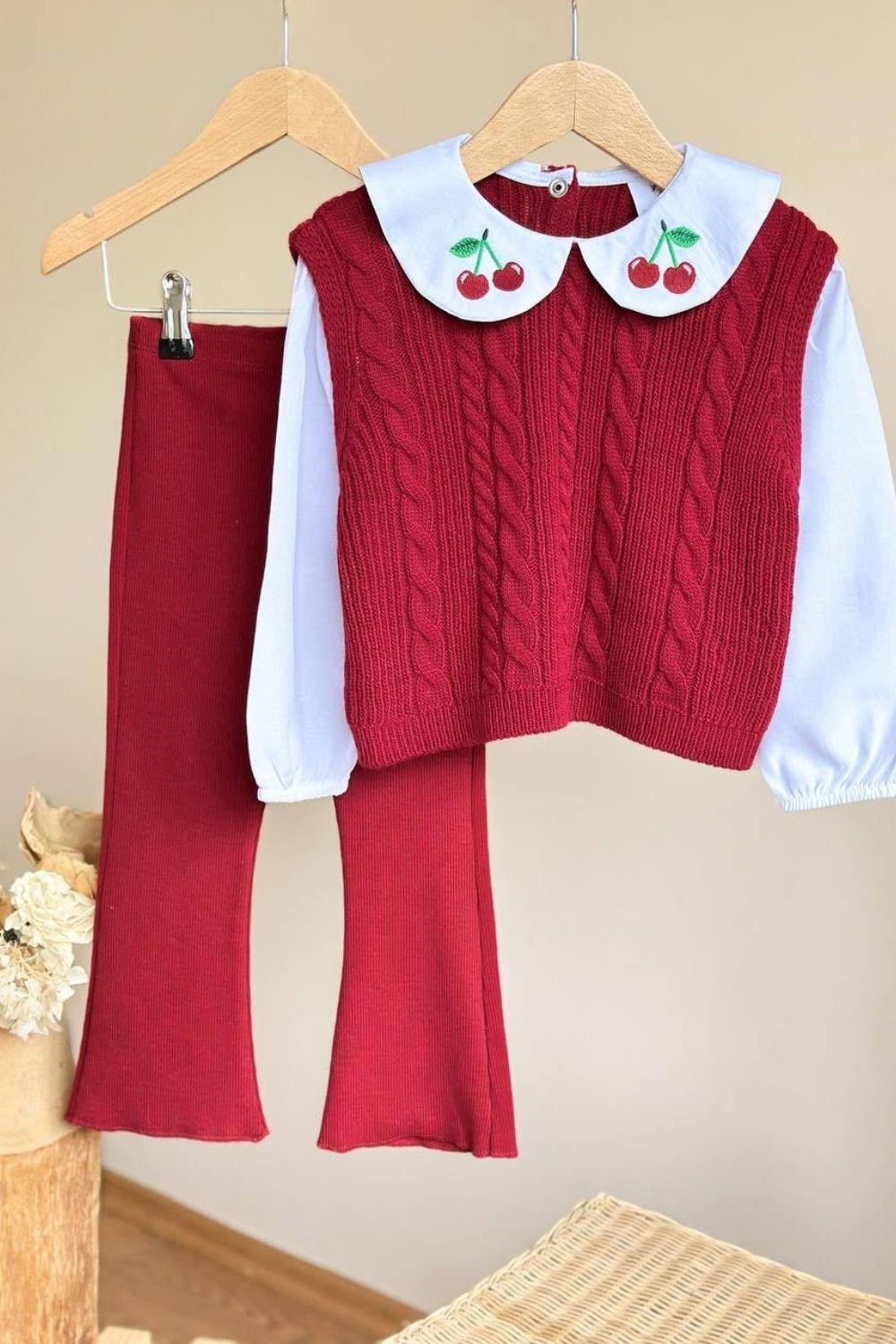 Kız Çocuk Kirazlı Triko Gömlek Tayt Takım