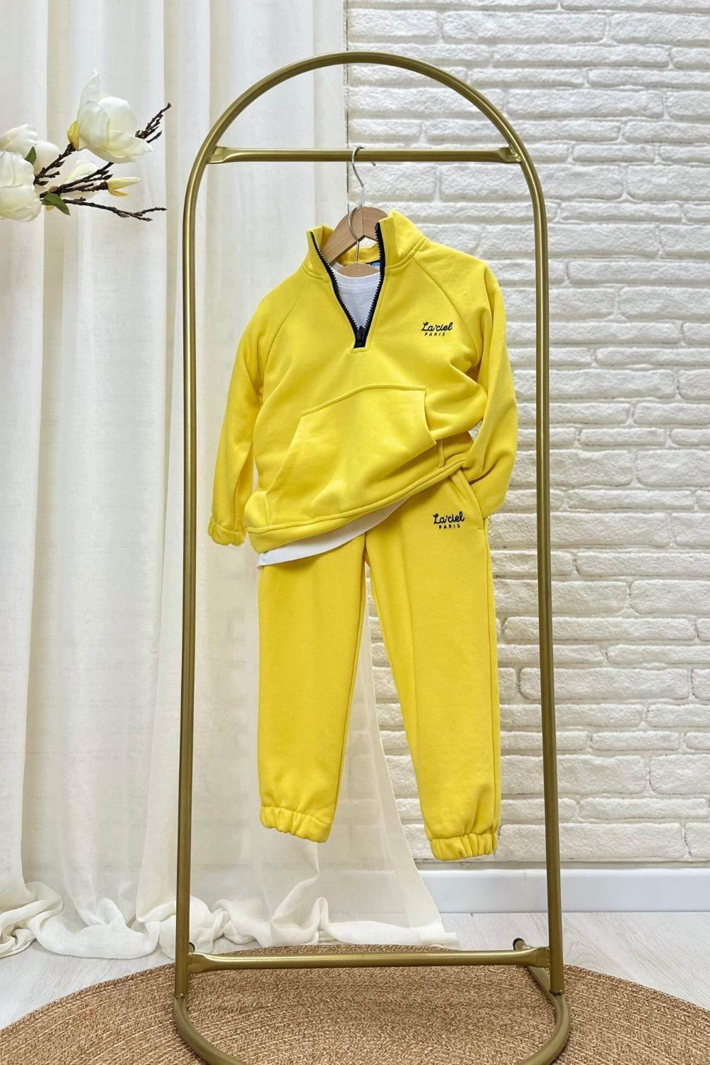 Unisex 3 İplik Balıkçı Dik Yaka Sarı Takım