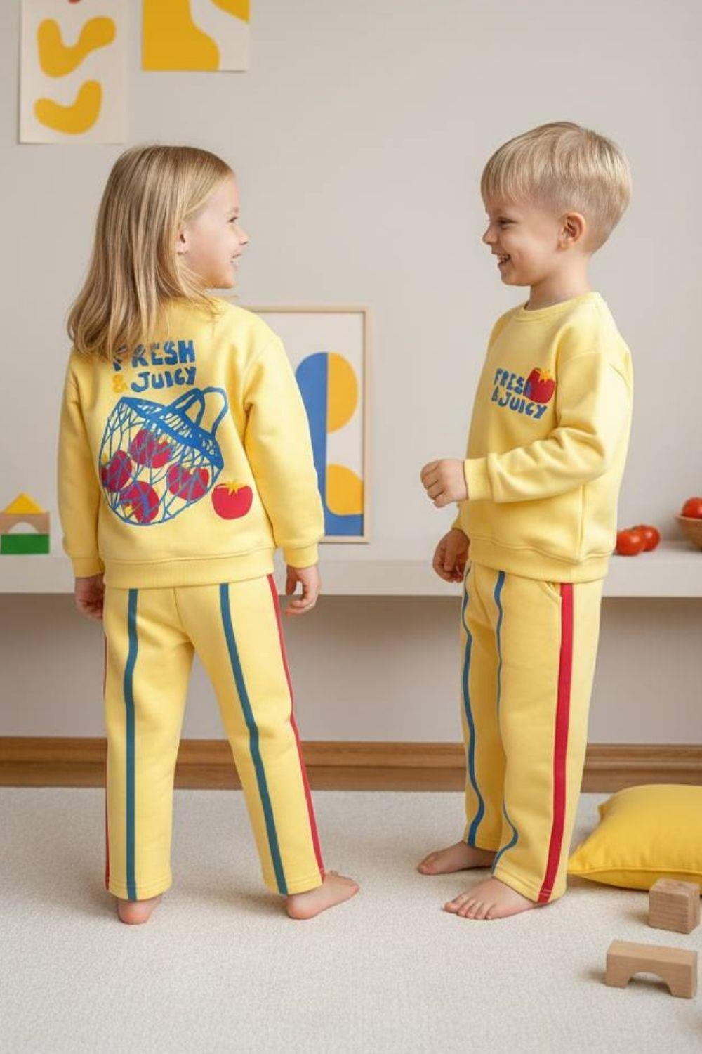 Unisex 3 İplik Fresh Sarı Çizgili Takım