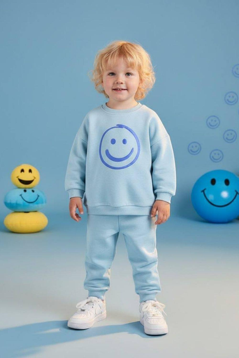 Unisex 3 İplik Gülen Yüz Mavi Takım