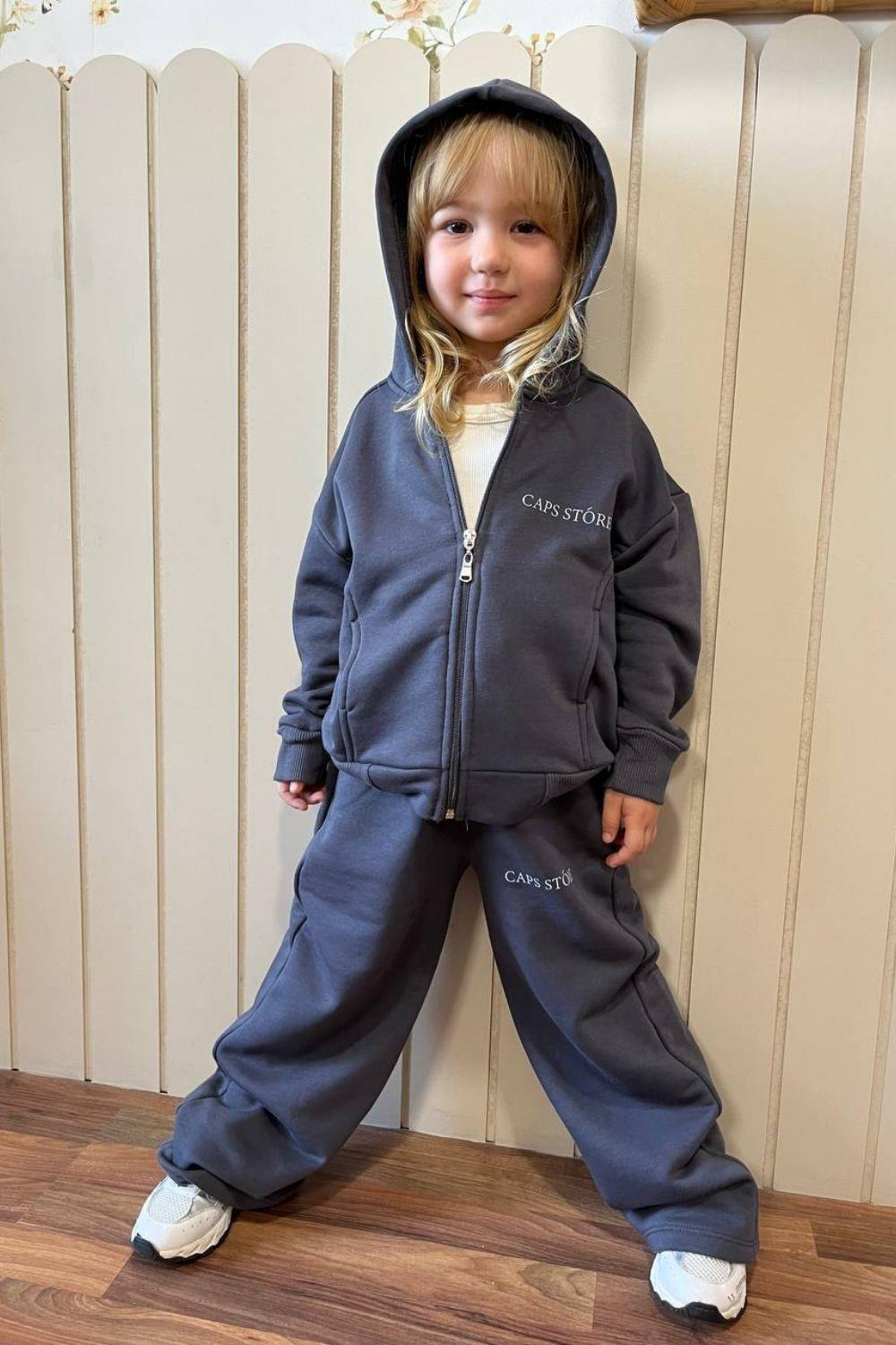 Unisex 3 İplik Kapüşonlu Fermuarlı Antrasit İkili Takım
