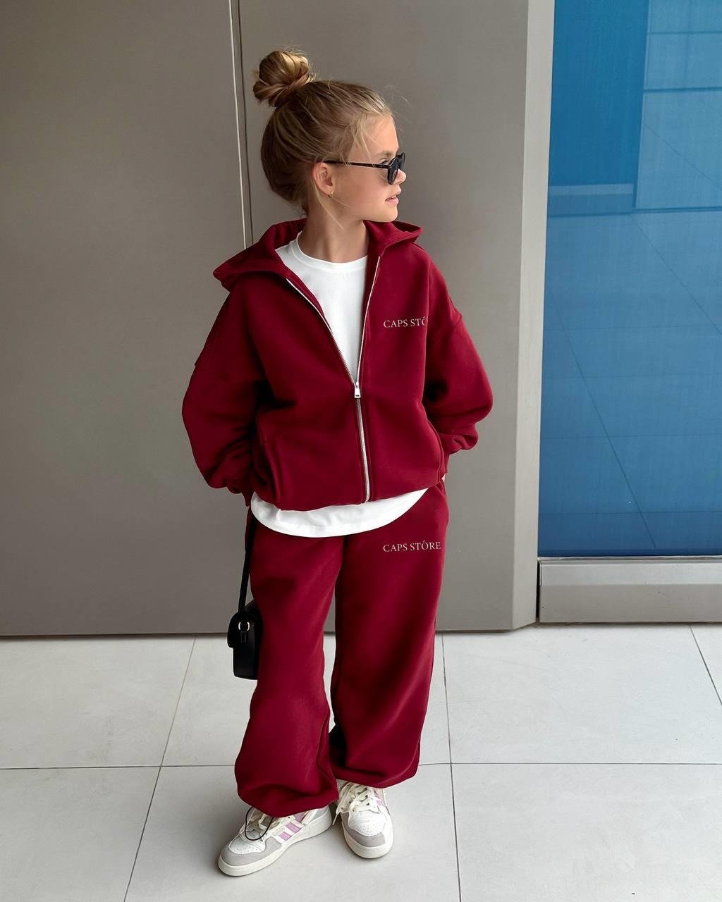 Unisex 3 İplik Kapüşonlu Fermuarlı Bordo İkili Takım (MMK-00189)