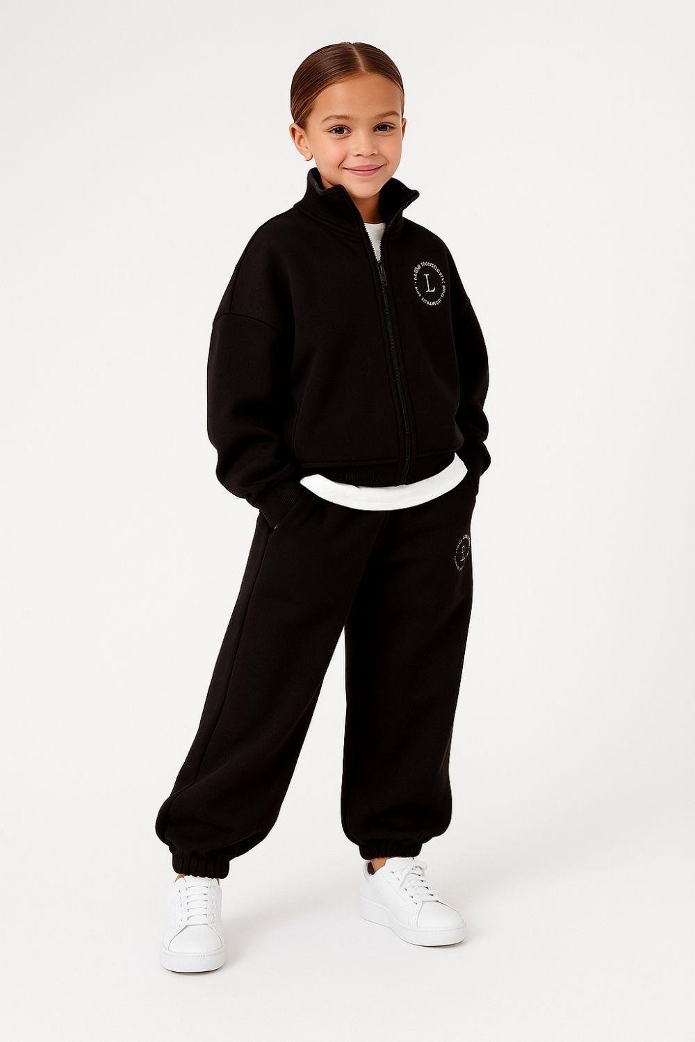 Unisex 3 İplik Laciel Fermuarlı Siyah Takım
