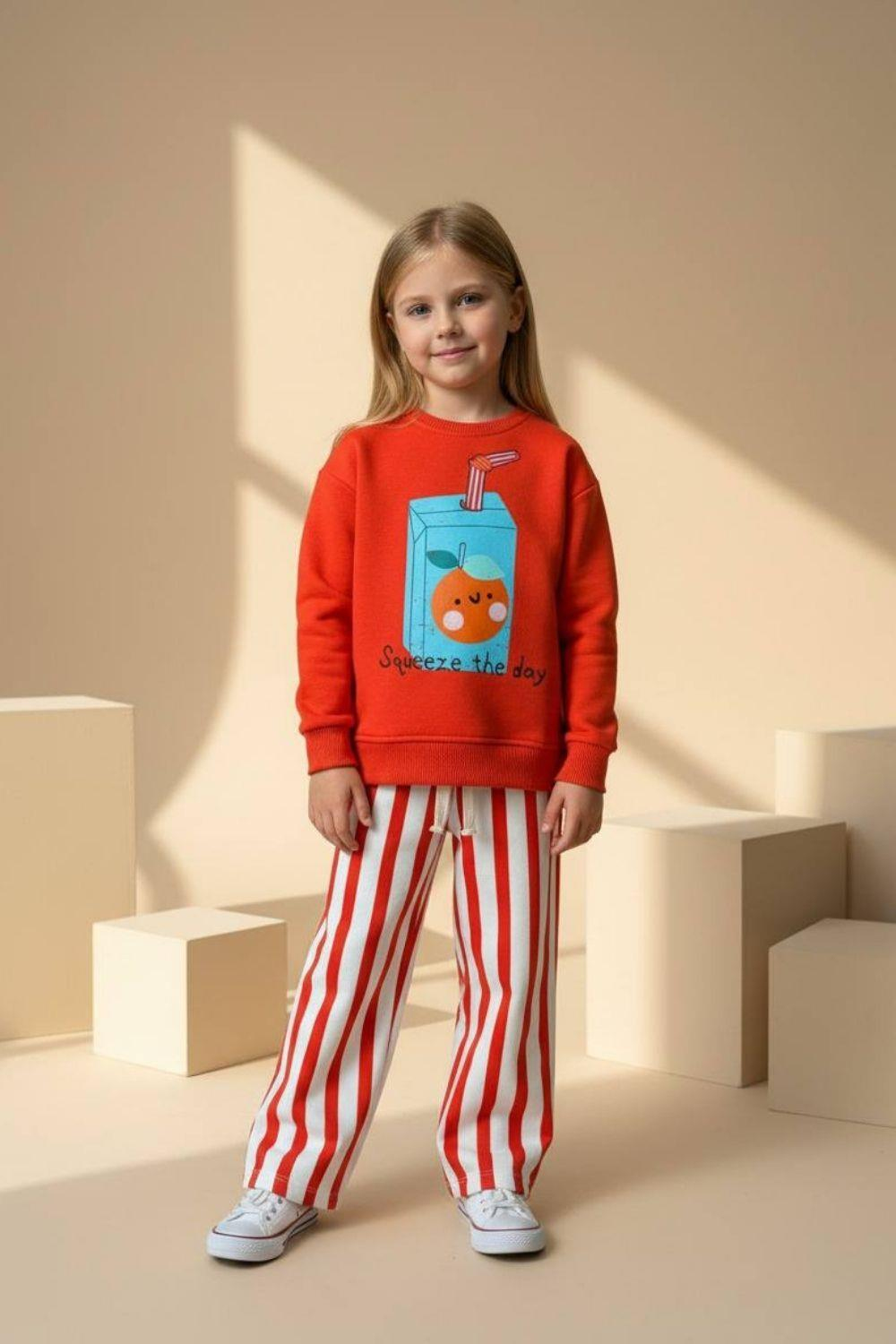 Kız Çocuk 3 İplik Portakal Çizgili Takım (MMK-00247)