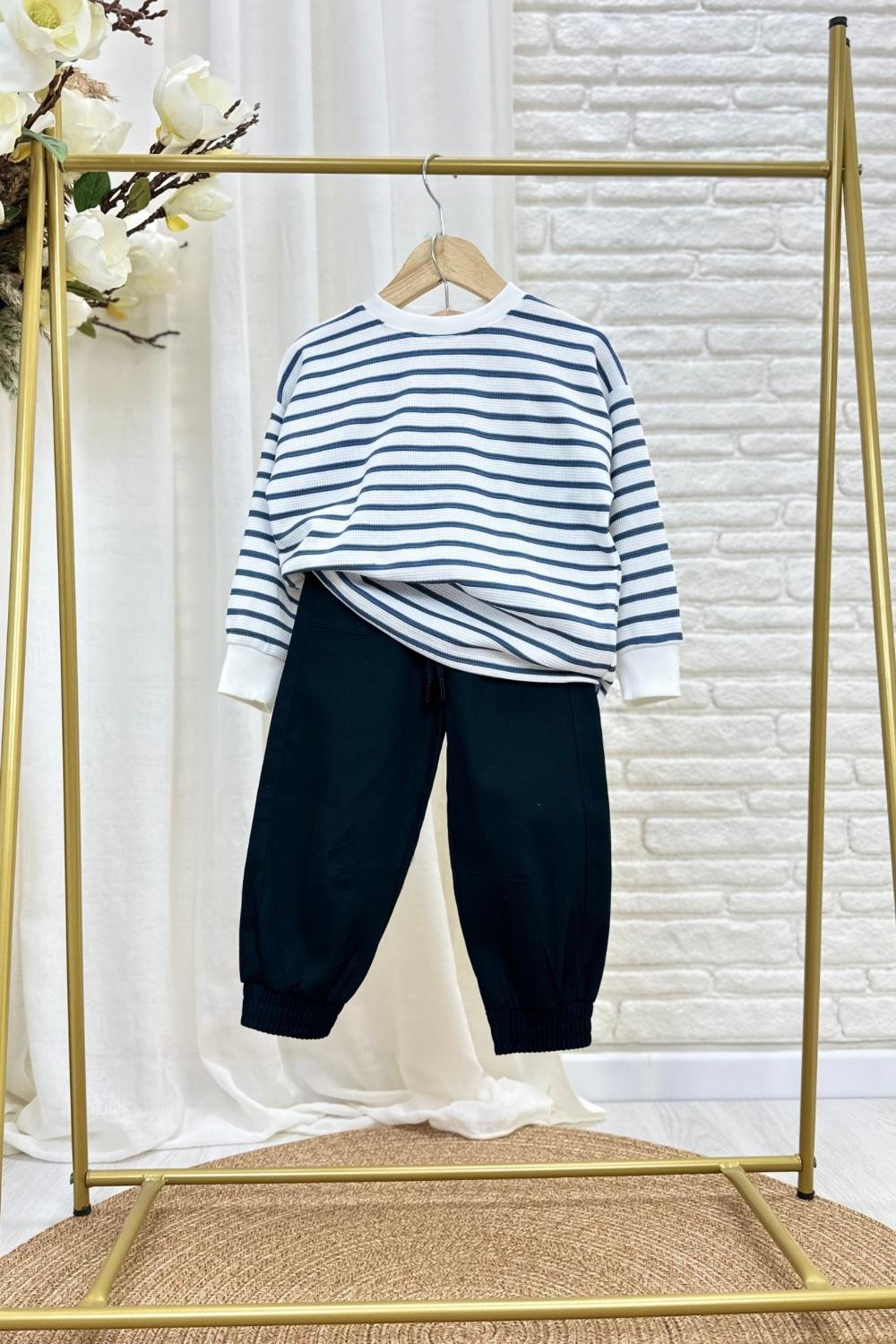 Unisex Basic Çizgili Lacivert Canvas Pantolon Takım (MMK-00108)